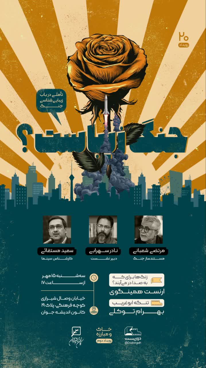 سعید مستغاثی و مرتضی شعبانی در دومین رویداد از سلسله نشست‌های “خاک و مبارزه” با محوریت زیبایی‌شناسی جنگ بیان کردند که سینمای جنگ ایران در تمام این سال‌ها نتوانسته پاسخ ذهنی مخاطب را پاسخ دهد و همچنین به جای ساخت فیلم در فضای ضد جنگ، فیلم در فضای ضد دفاع ساخته است.